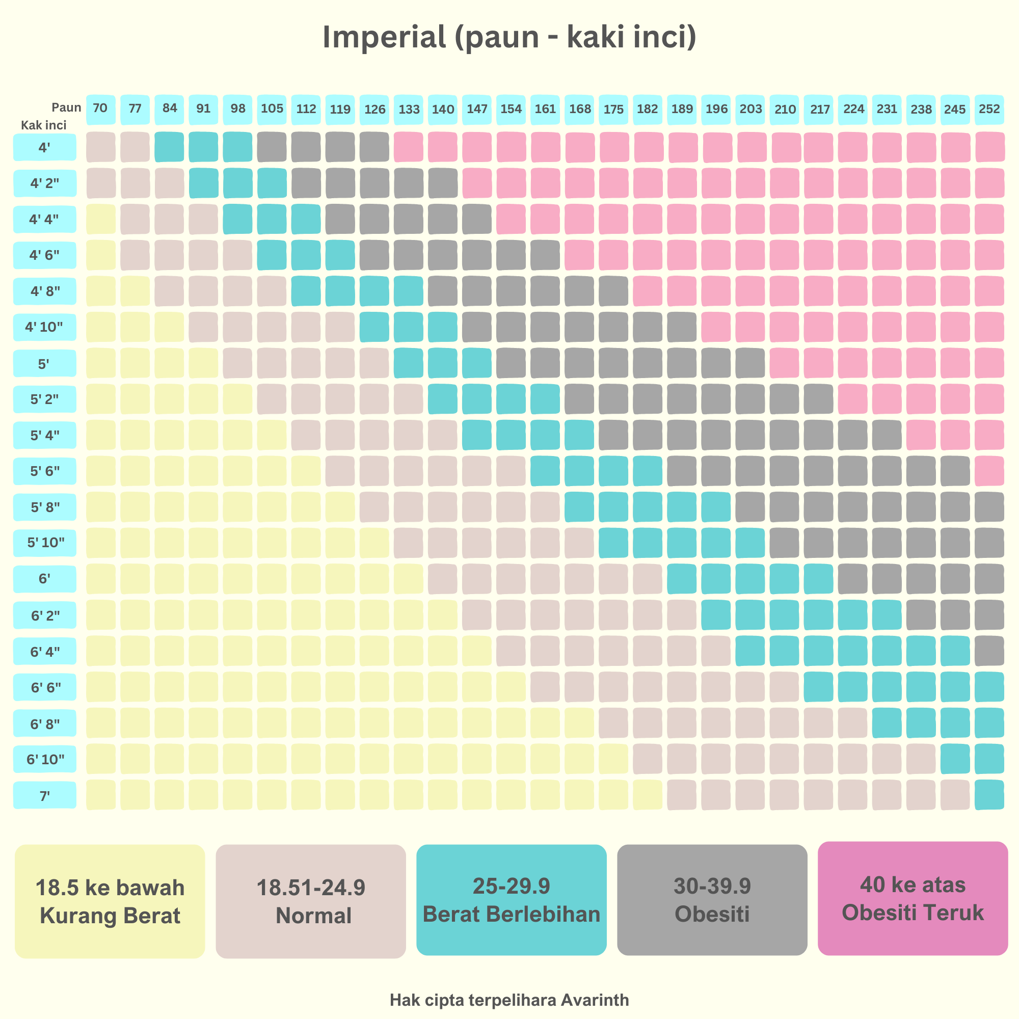 BMI dibahagikan kepada 5 kategori;